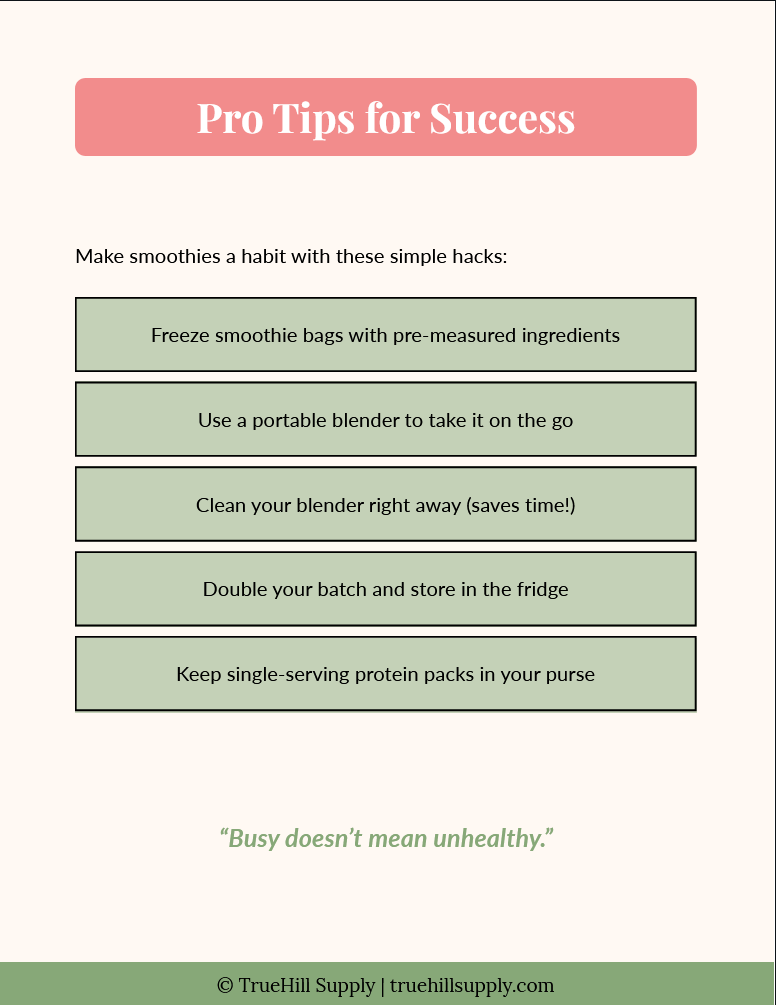 📅 Includes a smoothie tracker, protein tips, and grab-and-go ideas