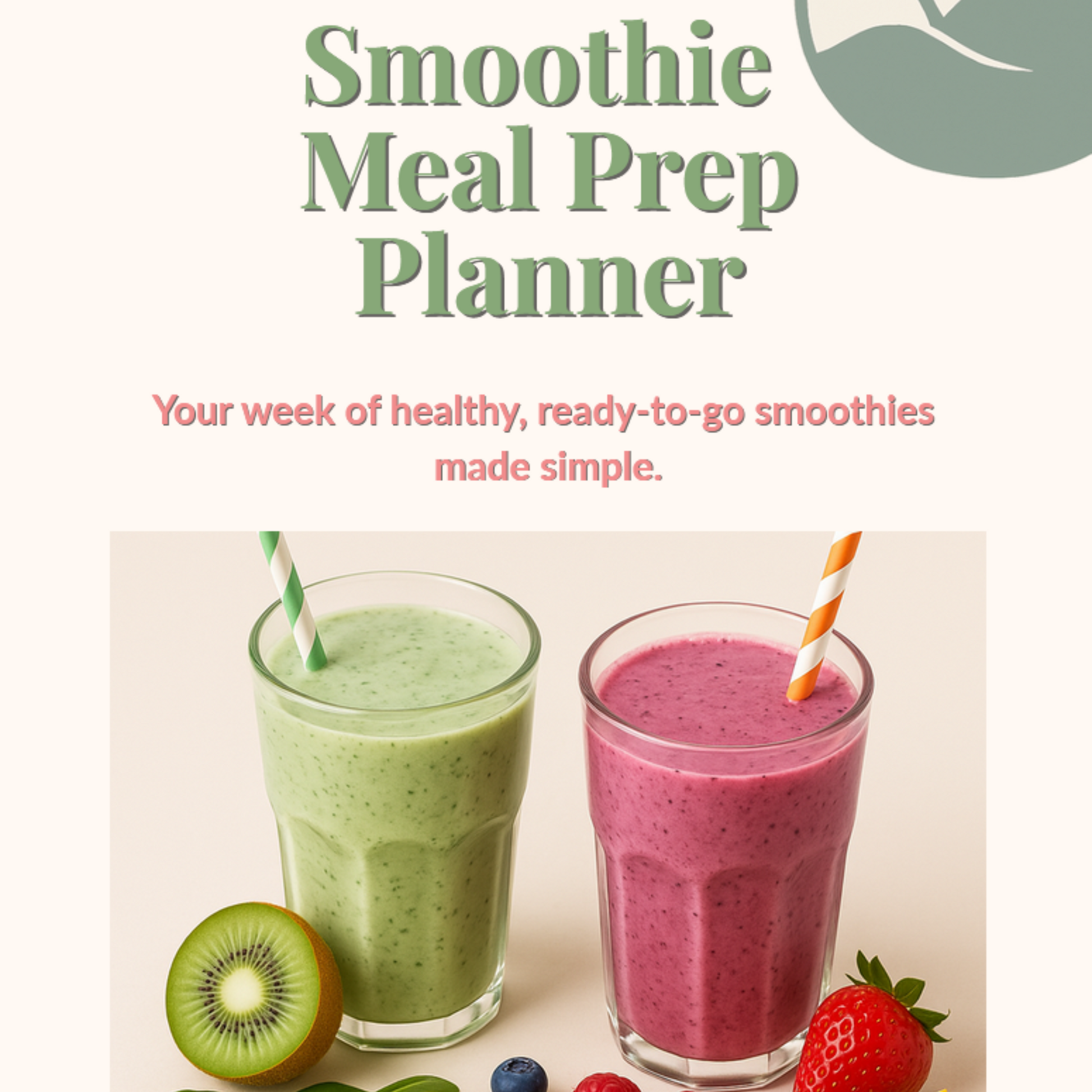 A beautifully designed 20-page planner to make smoothie prep simple, stress-free, and doable for busy moms.